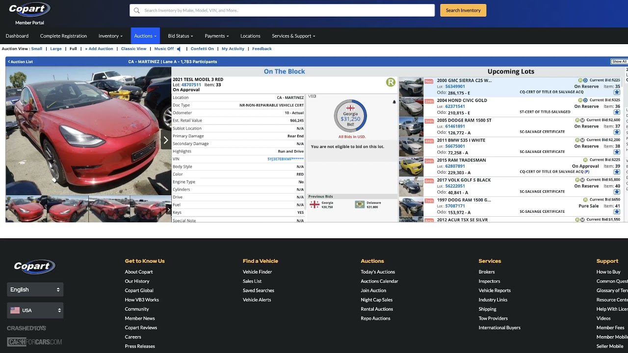 Copart Live Auction Recording Martinez Ca Lot Youtube